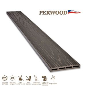 Доска для заборов Perwood произведена в Чехии. Полимер ПВХ в ее составе - один из самых надежных полимеров для производства экстерьерных композитных материалов.