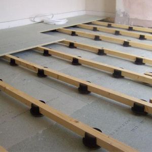 Підлога на лагах дозволяє значно підняти рівень підлоги в тих випадках, коли це необхідно, дає можливість прокласти під підлогою інженерні комунікації та забезпечує відмінну шумо- та теплоізоляцію.